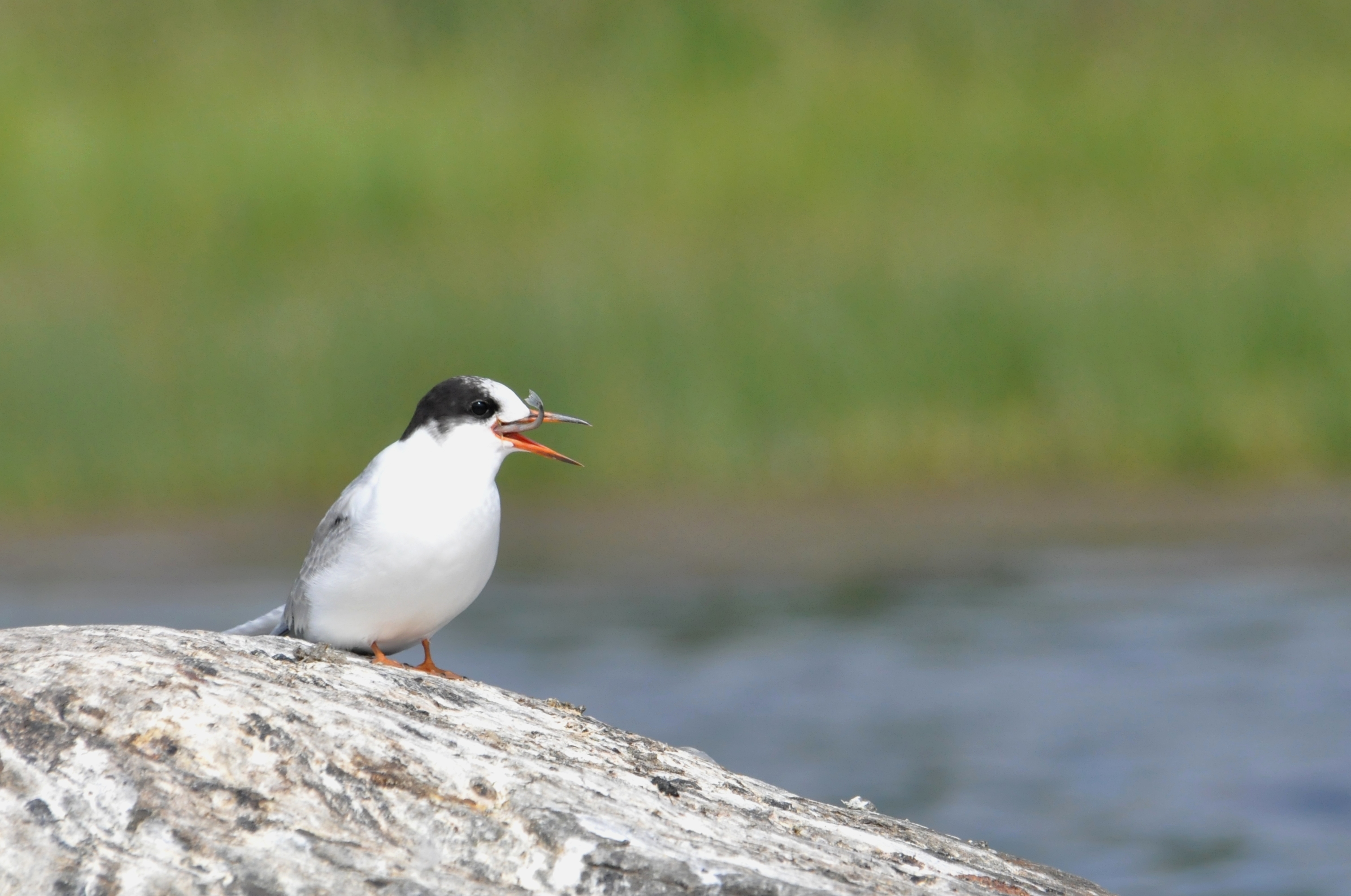 Tiirupoeg maiustamas äsja emalt saadud priske kalaga. Pilt on tehtud Kõiguste lahes Saaremaal.