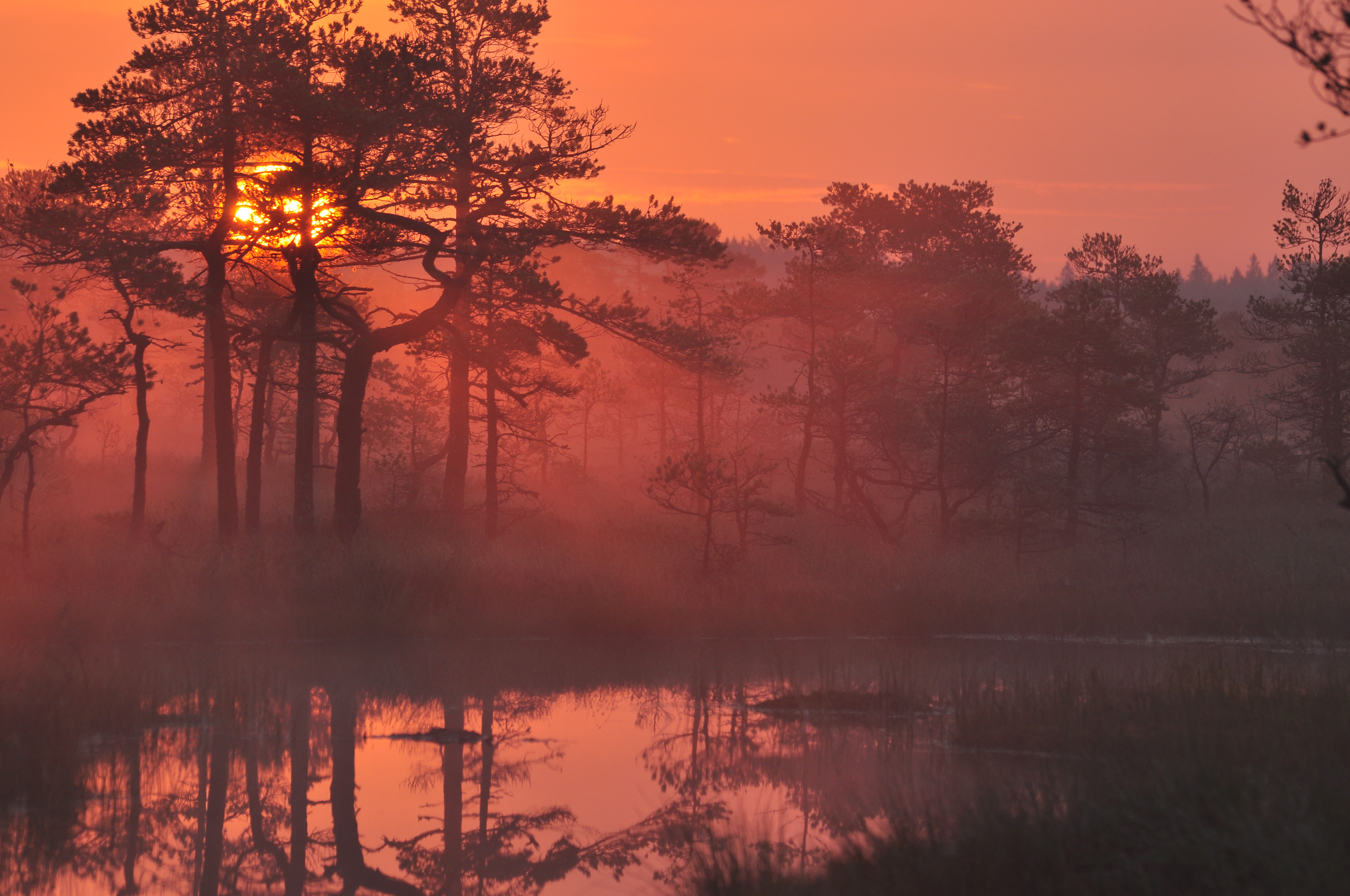 Päike tõusis pilveviirust kõrgemale ja laotas oma punased kiired üle raba
