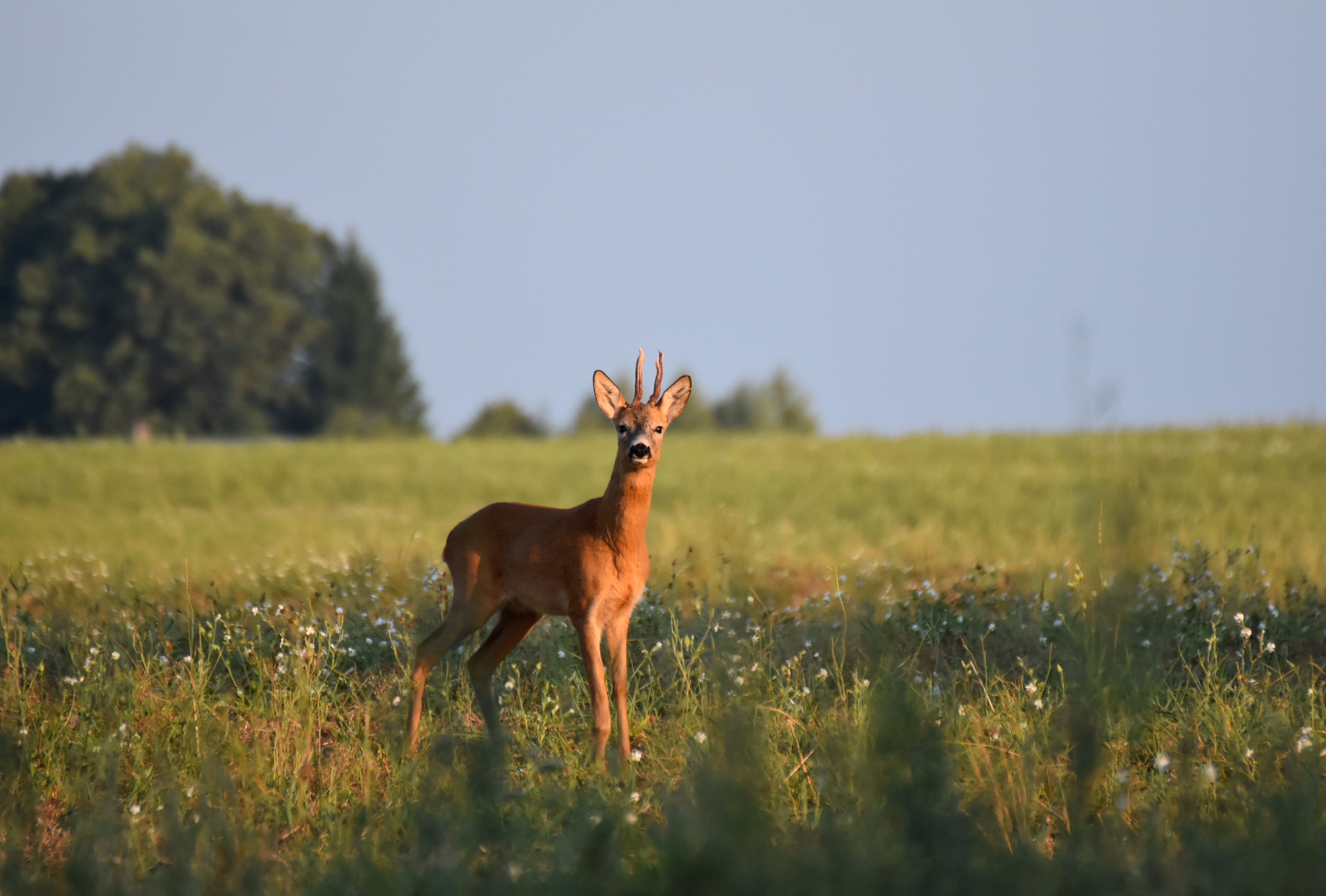 Ühel hommikul läksin jälle fotokaga uitama. Ootamatult jooksis metsatukast välja metskits. Kükitasin kiiresti ja tõstsin fotoaparaadi näo ette. Kits jooksis mõned sammud ja märkas siis mind. Teadsin juba varasematest kogemustest, et sellises asendis ei sarnane ma inimfiguurile. Kits tegi uudishimulikult poolkaare ümber minu, kuni tundis mu lõhna. Hetk hiljem põgenes ta üle põllu metsa suunas.